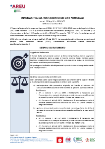 L'Agenzia Regionale Emergenza Urgenza (AREU) garantisce il trattamento e la protezione dei dati personali ai sensi del Reg. UE 2016/679, nel rispetto dei diritti di tutti coloro che, a vario titolo, ne sono utenti.
